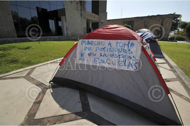 COLIMA, COLIMA, 07JUNIO2012.- Estudiantes del Movimiento Disidente ha montado un plantón afuera del edificio de Rectoría de la Universidad de Colima. Ellos demandan la renuncia del actual rector, debido a que en este momento se encuentra de licencia ya que contiende por una diputación federal por el PRI. FOTO: ALEJANDRO GONZÁLEZ /CUARTOSCURO.COM
