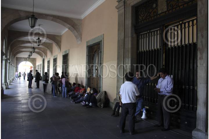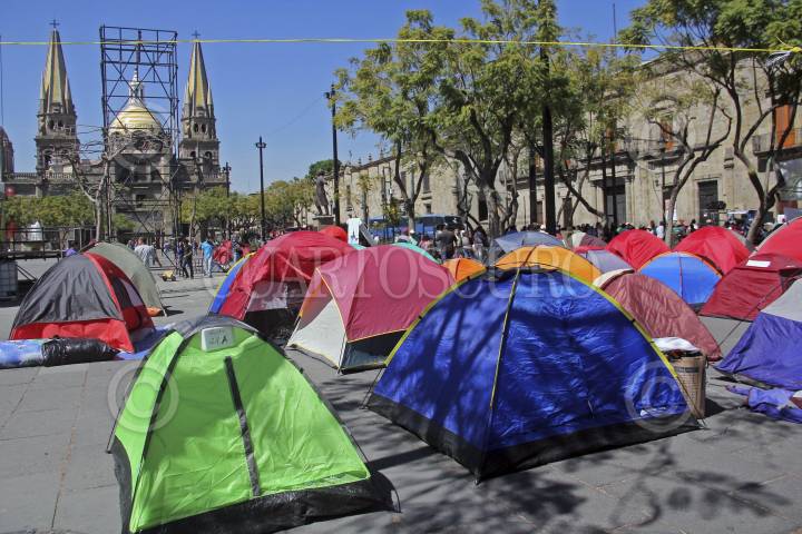 GUADALAJARA, JALISCO, 12FEBRERO2014.- Docentes adheridos a la Asamblea Magisterial Democrática de Jalisco continúan con la protestas a las afueras del Palacio Legislativo, en donde piden un diálogo con los líderes de las bancadas de los diputados para hacer patente su postura con respecto a lo que ellos dicen es la entrada en vigor inminente de las leyes secundarias en materia de reforma educativa en el Estado. Desde ayer en un plantón en la Plaza de la Liberación, hasta que les den una solución. FOTO: FERNANDO CARRANZA GARCÍA /CUARTOSCURO.COM