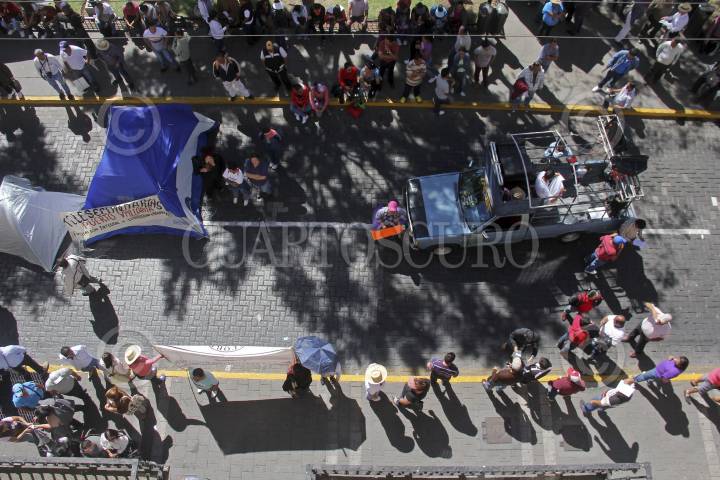 OAXACA, OAXACA, 26ENERO2012.- Integrantes del Sindicato de Trabajadores y Empleados de la Universidad Autónoma Benito Juárez de Oaxaca (Steuabjo) desquisiaron a los habitantes de la ciudad, ya que realizaron un bloqueo en el crucero de 5 Señores, su plantón duró siete horas. La exigencia es que el rector, Rafael Torres Valdez, y sus colaboradores cumplan con los trabajadores y de respuesta al pliego petitorio entregado desde el pasado mes de noviembre. FOTO: ARTURO PÉREZ ALFONSO/CUARTOSCURO.COM