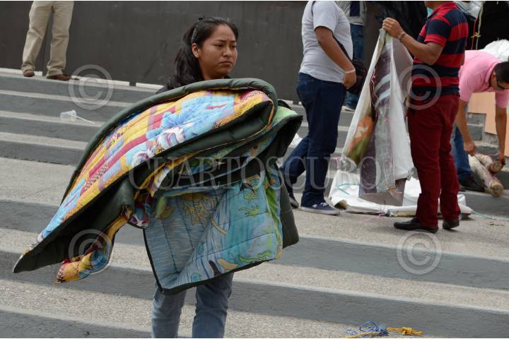 CHILPANCINGO, GUERRERO, 01MARZO2016.- Policías estales acreditables que mantenían un plantón frente al Palacio de Gobierno desde la administración del gobernador interino Rogelio Salvador Ortega se retiraron, no sin antes señalar que “La lucha la seguiremos a través de las intuiciones”. FOTO: JOSÉ I. HERNÁNDEZ / CUARTOSCURO.COM