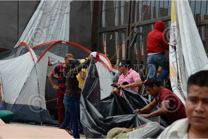MEXICO, D.F. 09AGOSTO2005.- Cañeros de varias partes de la República, continúan en plantón, a las puertasde SAGARPA, en espera de una respuesta a sus demandas. FOTO: Sandra Perdomo /CUARTOSCURO.COM