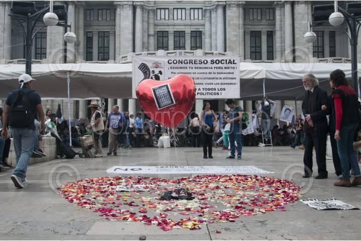 MÉXICO, D.F., 27JUNIO2015.- Continua el plantón 43 x 43 "Acción Global por Ayotzinapa" en la explanada del palacio de Bellas Artes, donde varias organizaciones sociales y políticas realizan actividades culturales, en apoyo a los familiares de los 43 normalistas de Ayotzinapa. FOTO: DIEGO SIMÓN SÁNCHEZ /CUARTOSCURO.COM