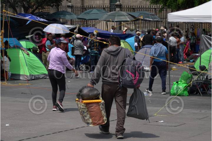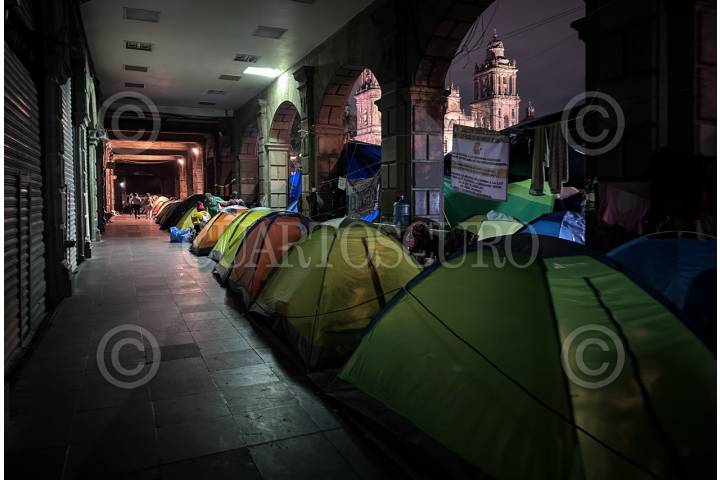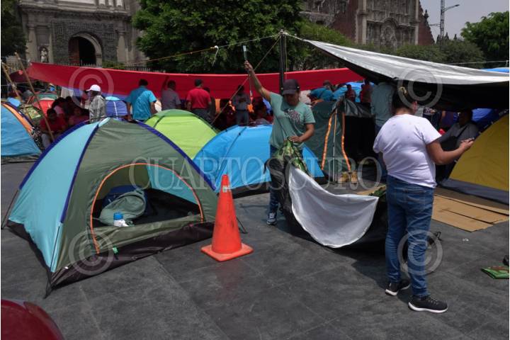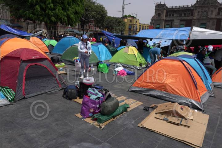 CIUDAD DE MÉXICO, 25MAYO2025.- Este domingo se cumplieron 11 días del plantón instalado en el Zócalo de la Ciudad por maestros integrantes de la Coordinadora Nacional de Trabajadores de la Educación (CNTE). El plantón abarca la planta del Zócalo pero también calles aledañas como parte de la Av. 20 de noviembre y Madero. FOTO: ANDREA MURCIA /CUARTOSCURO.COM