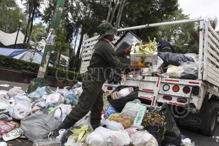 CIUDAD DE MÉXICO, 05JUNIO2016.- En la imagen, trabajadores de la delegación Cuauhtémoc recogen la basura generada en los alrededores de la ciudadela. La vida cotidiana de maestros integrantes de la CNTE provenientes de Michoacán, Chiapas y Oaxaca continúa en el plantón establecido en la Plaza de la Ciudadela, a un costado de Av. Bucareli. Por el momento, mencionaron, no llevarán a cabo ninguna moviización, sino que se dedicarán a organizar su agenda de actividades para la próxima semana. FOTO: MARÍA JOSÉ MARTÍNEZ /CUARTOSCURO.COM