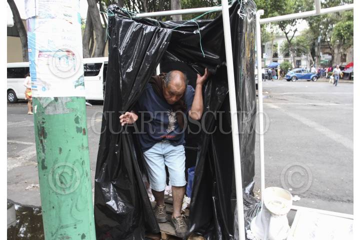 CIUDAD DE MÉXICO, 05JUNIO2016.- Regaderas improvisadas fueron dispuestas por los mismos maestros para su higiene personal. La vida cotidiana de maestros integrantes de la CNTE provenientes de Michoacán, Chiapas y Oaxaca continúa en el plantón establecido en la Plaza de la Ciudadela, a un costado de Av. Bucareli. Por el momento, mencionaron, no llevarán a cabo ninguna moviización, sino que se dedicarán a organizar su agenda de actividades para la próxima semana. FOTO: MARÍA JOSÉ MARTÍNEZ /CUARTOSCURO.COM