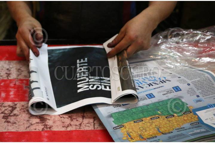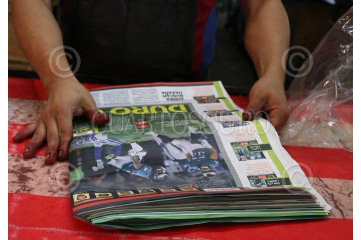 Puesto de fresas y frambuesas de la Central de Abastos ocupa papel periódico para la entrega de su producto. Esto tras la entrada en vigor de la Ley de Residuos Sólidos la cual se prohíbe la comercialización, distribución y entrega de bolsas de plástico.
