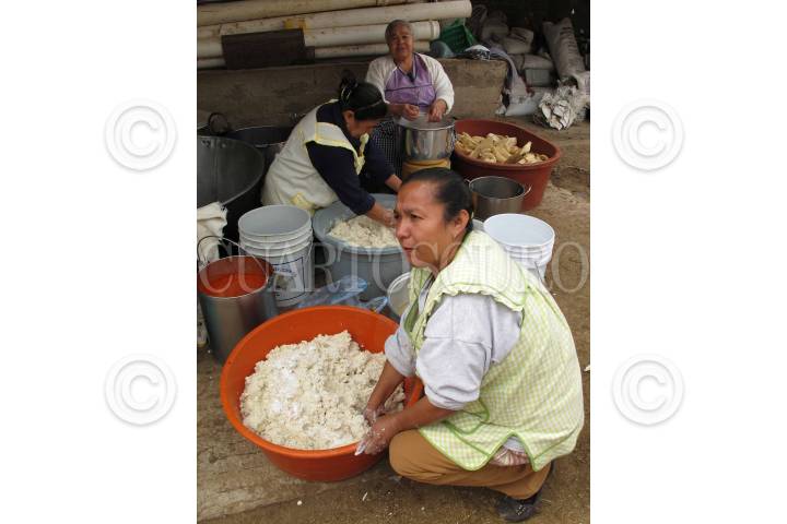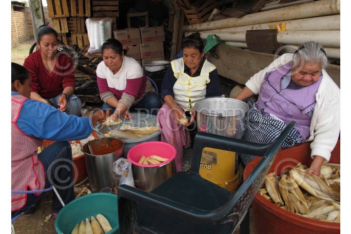 LEÓN, GUANAJUATO, 12DICIEMBRE2014. En la comunidad de Duarte un grupo de señoras prepara tamales, un platillo típico para los mexicanos que consiste en una masa de maíz con manteca y que en su interior puede llevar carne, queso, rajas de chile y salsa, todo esto envuelto en hojas de maíz y cocidos al vapor. FOTO: GERARDO M. GARCÍA /CUARTOSCURO.COM