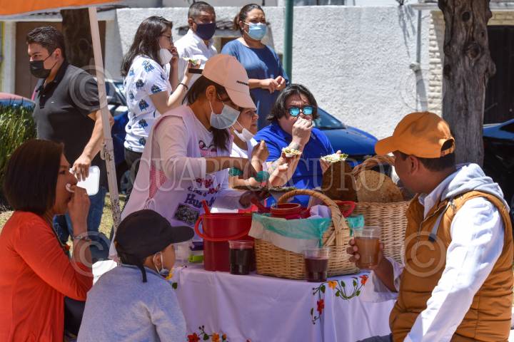 Productoras de huaraches de Toluca participaron en la Expo Huarache Toluca 2021 instalada en el Jardín Sor Juana Inés de la Cruz en la capital mexiquense.