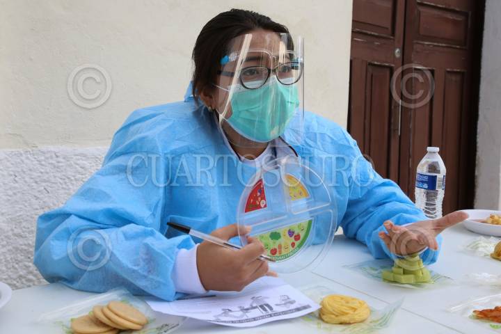 Personal médico del IMSS muestran el plato saludable en la Ciudad de la Salud "Día Mundial de la Diabetes", en Reforma.