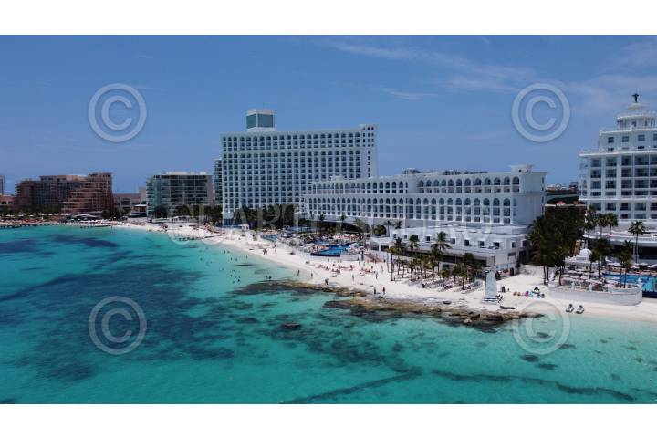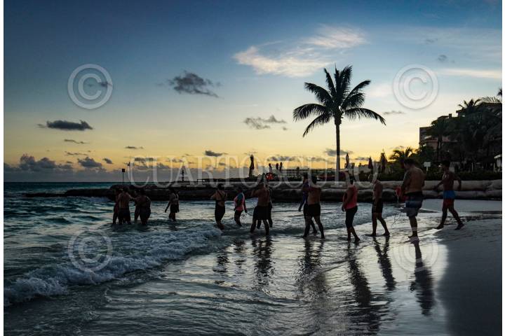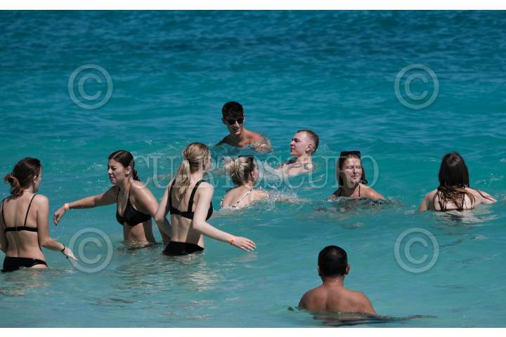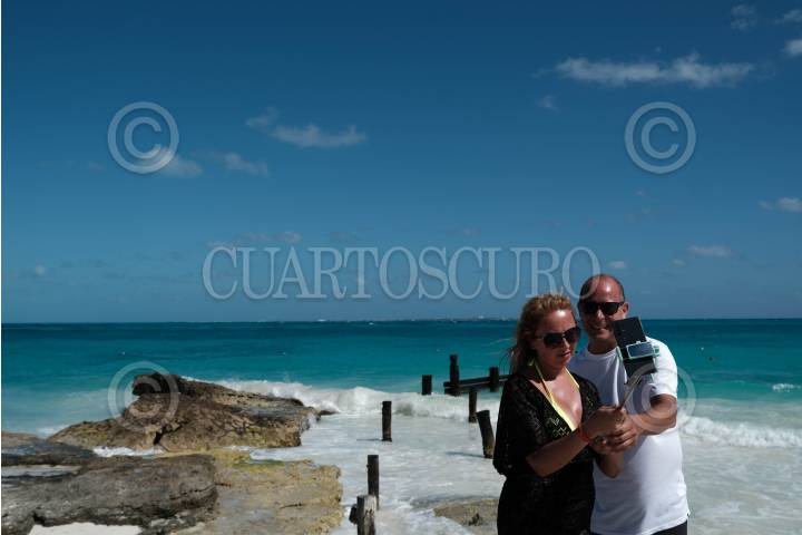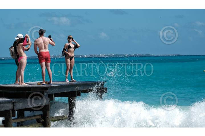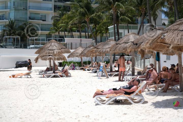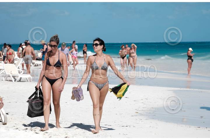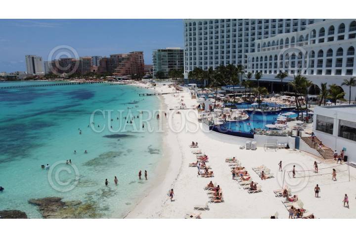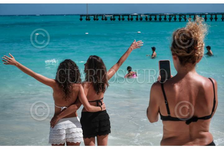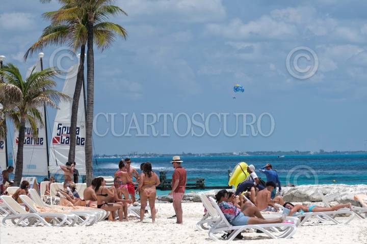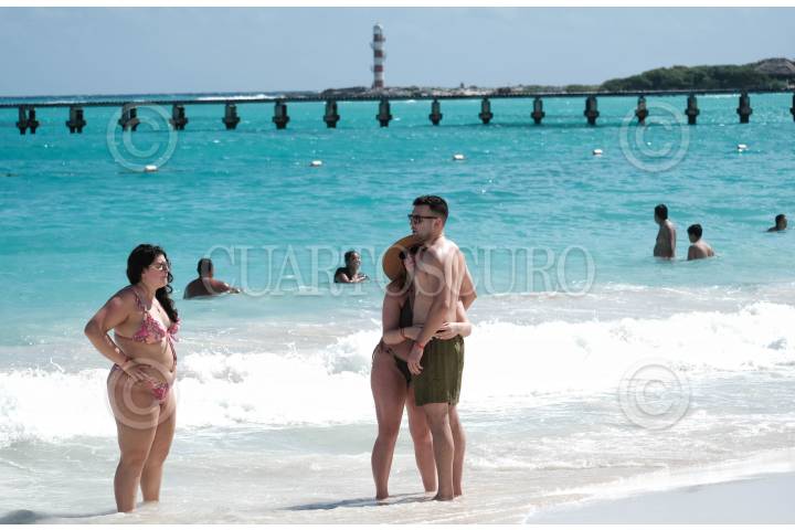 Turistas disfrutan del buen clima y del mar libre de sargazo en Playa Caracol
