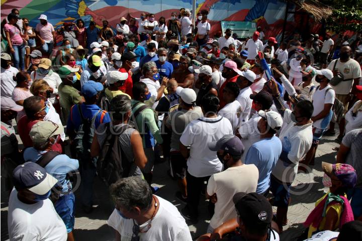 Integrantes de la organización Turisteros en Defensa y Rescate de Playa Icacos acusaron a la Unión de Sociedades Cooperativas Vanguardia del Estado de Guerrero de ser enviados del gobierno de querer meterse a vender a la Playa Icacos, donde ellos llevan años establecidos.