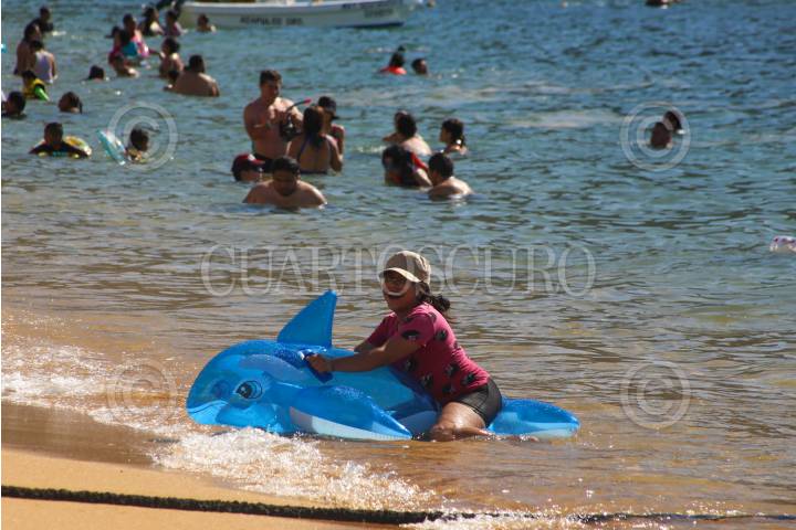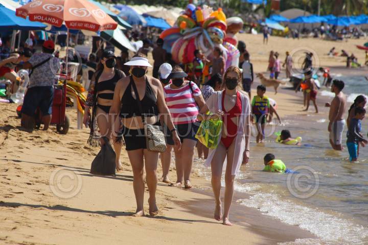 A días de concluyan el año turistas han abarrotado la Playa Icacos en Acapulco.