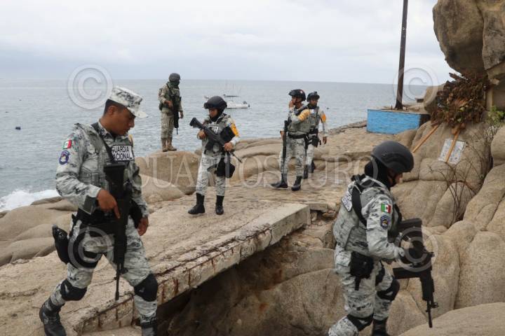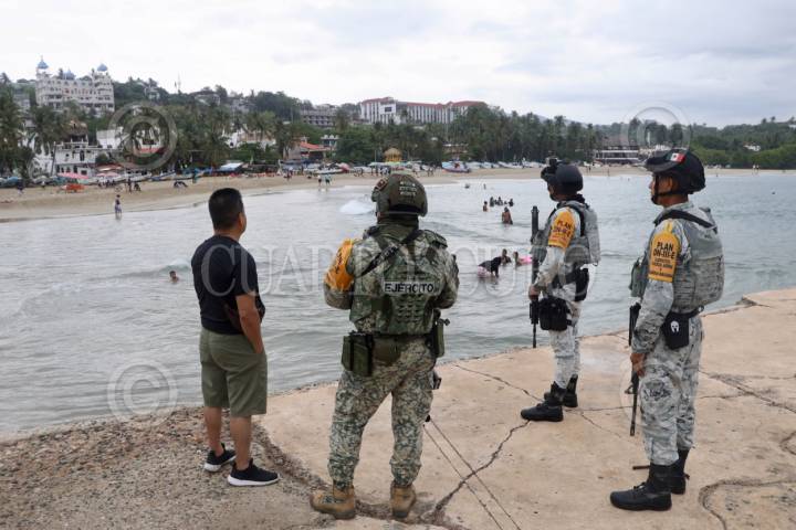 SAN PEDRO MIXTEPEC, OAXACA, 17JUNIO2025.- Elementos de la Guardia Nacional realizaron un recorrido por la playa principal en Puerto Escondido ante el avance de la tormenta tropical Erick que de acuerdo a los pronósticos afectará las costas de Oaxaca. FOTO: CAROLINA JIMÉNEZ MARISCAL/CUARTOSCURO.COM