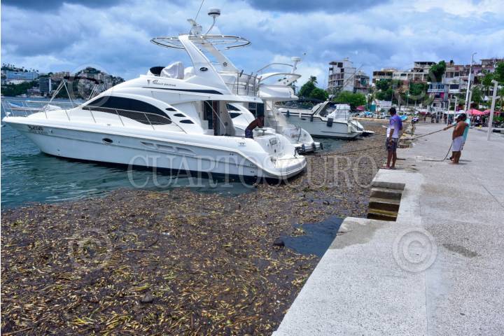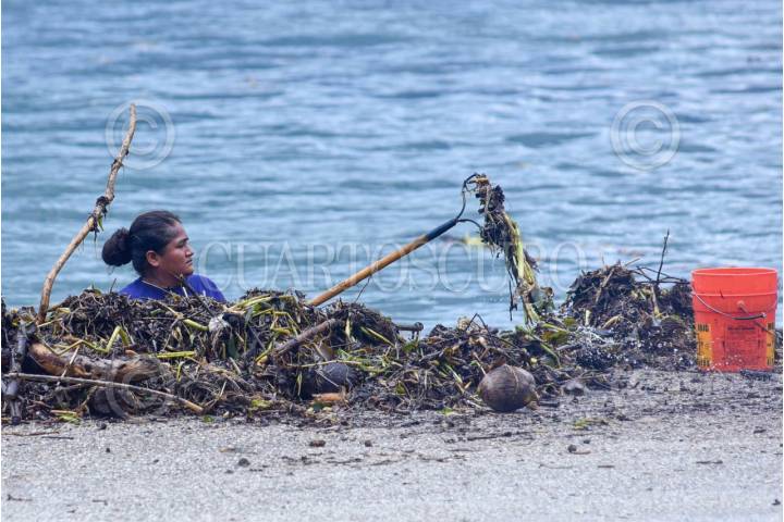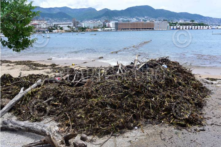 ACAPULCO, GUERRERO, 23JUNIO2025.- Toneladas de lirio acuático llegó a las playas de Acapulco durante el fin de semana; arrastrado por las corrientes marinas, las fuertes lluvias que ocasionaron las tormentas Dalila y el huracán Erick; arrastraron este tipo de planta acústica que crece en las lagunas costeras. Prestadores de servicios turísticos y trabajadores de dependencias como Fonatur y la Administradora de Playas se encargan de retirar el lirio de las playas. FOTO: CARLOS ALBERTO CARBAJAL/CUARTOSCURO.COM