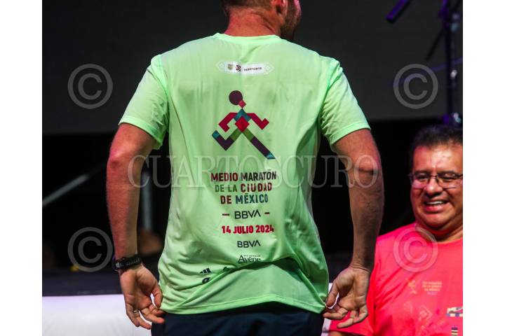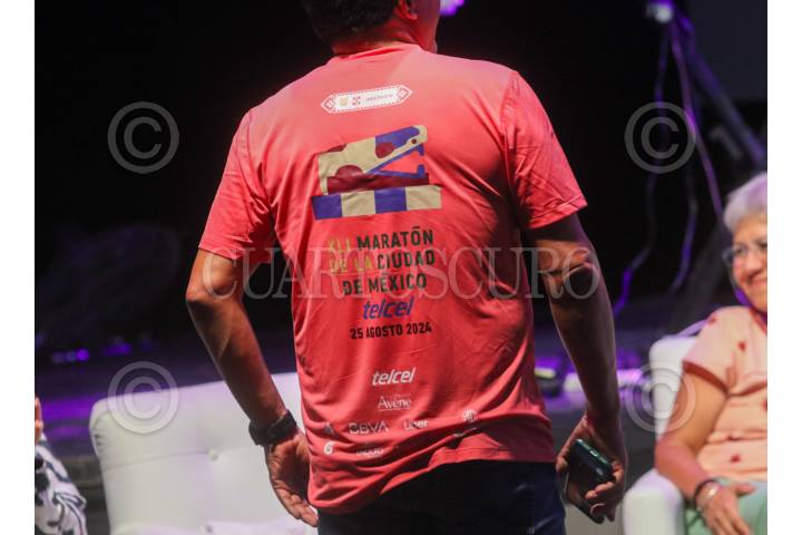 CIUDAD DE MÉXICO. 23MAYO2024.- Hoy se presentó en el Frontón México, las playeras y las medallas del maratón y medio maratón de la Ciudad de México. Encabezó el evento Julio Pérez encargado del instituto del deporte de la Ciudad. FOTO: VICTORIA VALTIERRA/CUARTOSCURO.COM