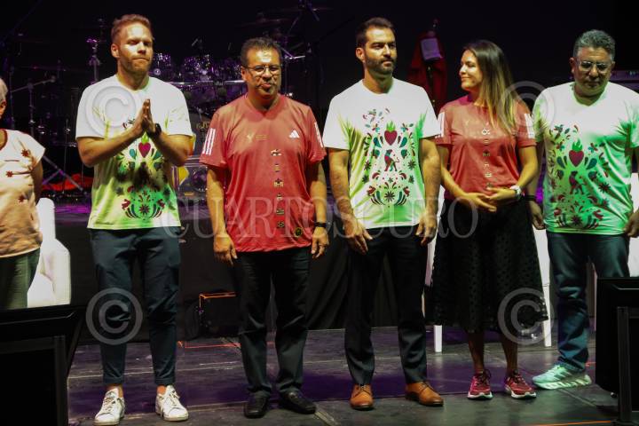 Mauricio Sulaimán, presidente de Consejo Mundial de Boxeo; Javier Hidalgo, director general del Instituto del Deporte de la capital; y los boxeadores: David "Rey" Picasso, Erika "Dinamita" Cruz e Irma García, encabezaron la presentación de la nueva playera que será utilizada para la Clase Masiva de Box 2023 del próximo 17 de junio el zócalo capitalino.
