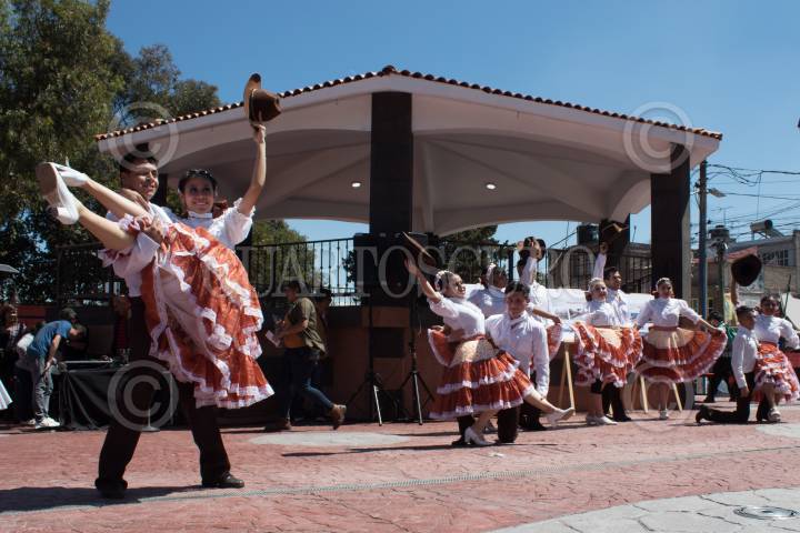 Durante la entrega de obras de la Plaza Cívica, el Ballet Folklórico de La Magdalena Contreras, realizó una presentación de ballet regional representativo de Baja California "el conejo".