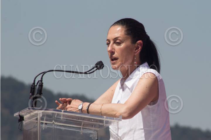 Claudia Sheinbaum Pardo, jefa de Gobierno encabezó la entrega de obras en la Plaza Cívica del pueblo de San Nicolás Totolapan