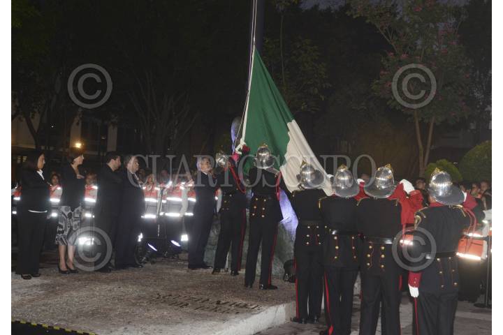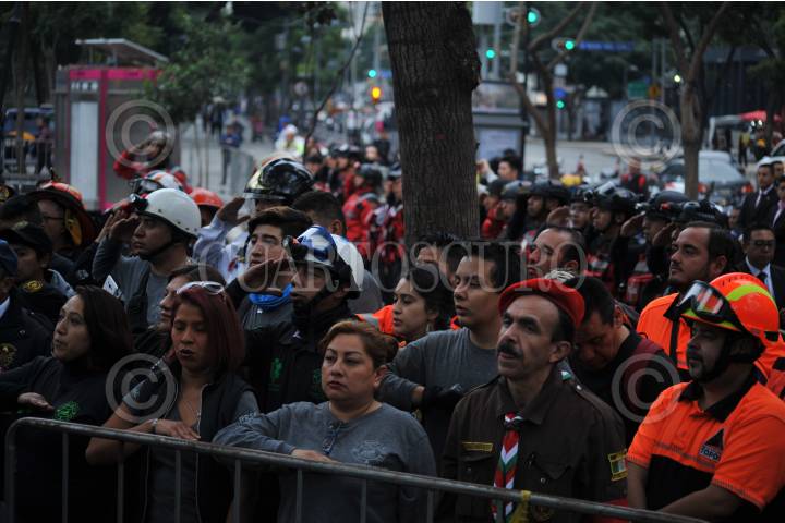 MÉXICO, D.F., 19SEPTIEMBRE2010.- Elementos de protección civil, bomberos y policías durante el izamiento de bandera en honor a los caídos en los sismos de 1985 en el asta de Plaza de la Solidaridad. FOTO: RODOLFO ANGULO /CUARTOSCURO.COM