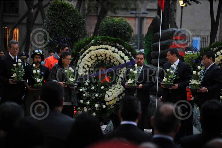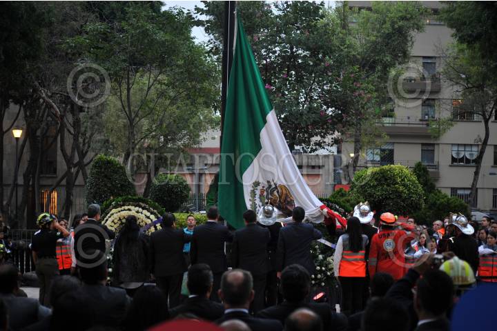 CIUDAD DE MÉXICO, 19SEPTIEMBRE2018.- El Jefe de Gobierno encabezó una ceremonia para conmemorar a las víctimas de los sismos de 1985 y 2017, ahí se izo la bandera a media hasta y agradeció el apoyo de la sociedad y los grupos de rescatistas que colaboraron en la emergencia. FOTO: ARMANDO MONROY /CUARTOSCURO.COM