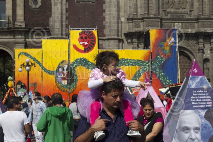 CIUDAD DE MÉXICO, 01NOVIEMBRE2016.- Decenas de paseantes disfrutan de las ofrendas colocadas en la Plaza de Santo Domingo. Esta megaofrenda esta convocada por la UNAM y este año esta dedicada al pintor Rufino Tamayo. FOTO: MOISÉS PABLO /CUARTOSCURO.COM