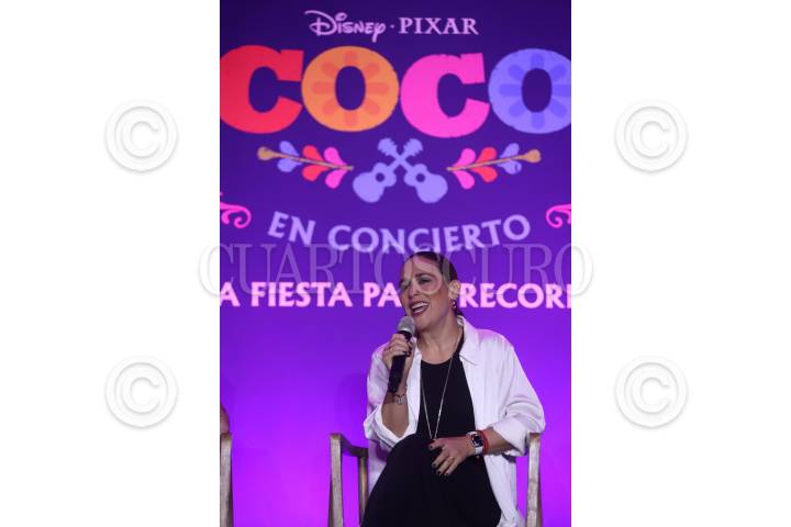 CIUDAD DE MÉXICO, 09OCTUBRE2024. Sofía Garza durante la conferencia del espectáculo “Coco en concierto: Una fiesta para recordar”, que se llevará a cabo el próximo 2 de noviembre en la Plaza de Toros La México. FOTO: EDGAR NEGRETE LIRA/CUARTOSCURO.COM
