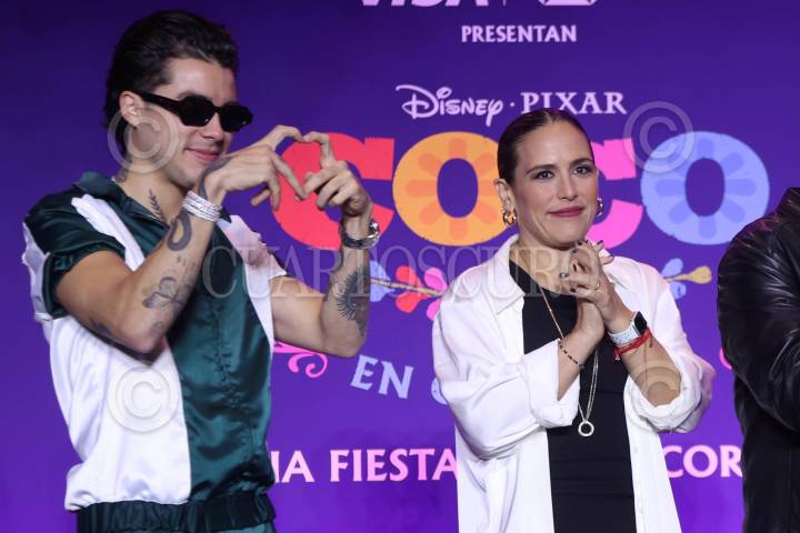CIUDAD DE MÉXICO, 09OCTUBRE2024. Mario Bautista y Angélica Vale durante la conferencia del espectáculo “Coco en concierto: Una fiesta para recordar”, que se llevará a cabo el próximo 2 de noviembre en la Plaza de Toros La México. FOTO: EDGAR NEGRETE LIRA/CUARTOSCURO.COM