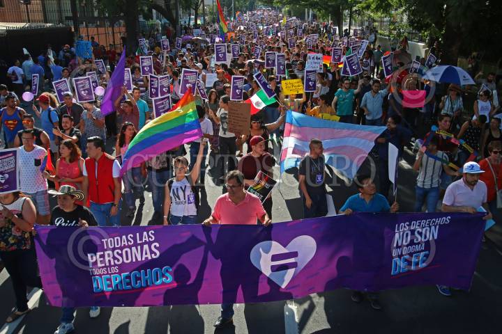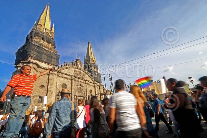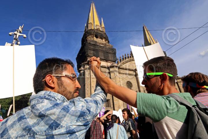 GUADALAJARA, JALISCO, 11SEPTIEMBRE2016.- Organizaciones y miembros de la comunidad Lésbico, Gay, Bisexual, Transexual, Travesti, Transgénero e Intersexual (LGBTTTI) realizaron una marcha denominada “Por la Igualdad” y caminaron de las avenidas Hidalgo y Chapultepec hasta la Plaza Fundadores del centro histórico, para manifestar su rechazo a la intervención de la Iglesia en el Estado. El día de ayer, organizaciones religiosas realizaron manifestaciones en diferentes estados, para rechazar la iniciativa del ejecutivo federal que propone el matrimonio igualitario. FOTO : FERNANDO CARRANZA GARCIA / CUARTOSCURO.COM