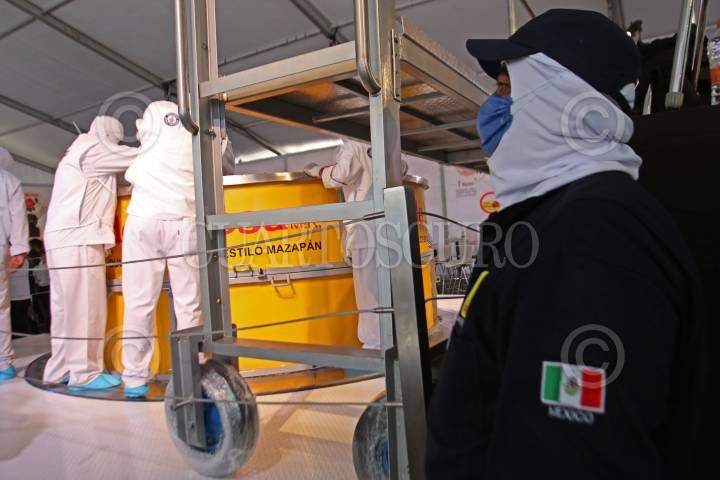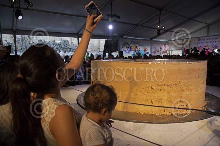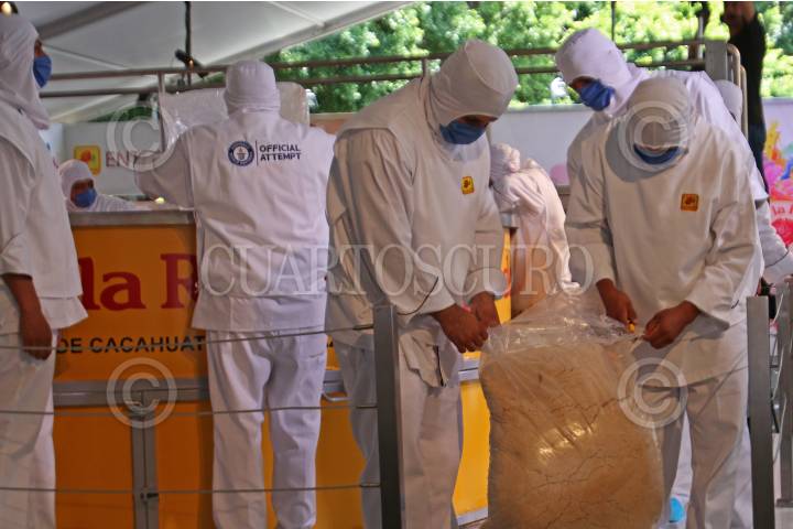 GUADALAJARA, JALISCO, 19JULIO2018.- Esta tarde en la Plaza Fundadores se logro imponer el Récord Guinness al Mazapán mas grande del mundo, este producido por una dulcera conocida y en la que participaron mas de 100 personas para obtener un peso de mas de ocho mil 296.1 kilos. FOTO: FERNANDO CARRANZA GARCIA / CUARTOSCURO.COM