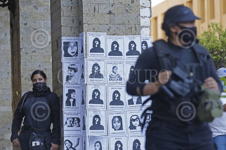 Policías mujeres se hacen cargo de guardar el orden, en donde un grupo de feministas vestidas de catrinas realizaron una protesta en Plaza Fundadores para honrar a las mujeres asesinadas en México.