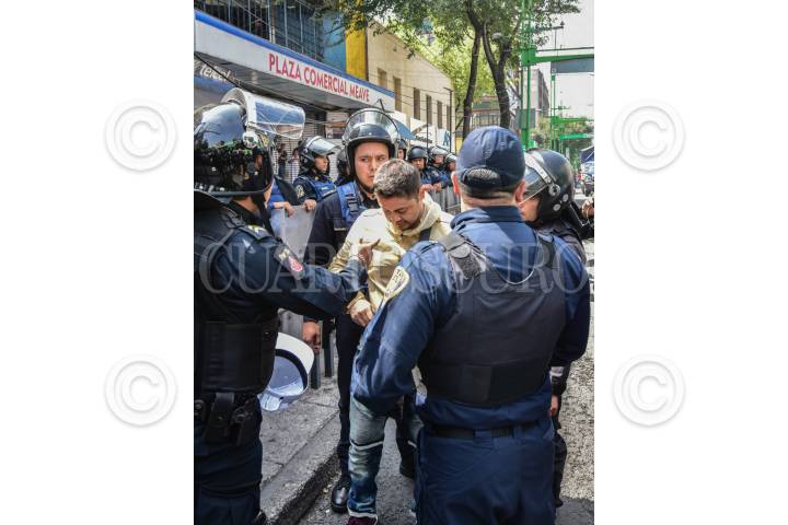 CIUDAD DE MÉXICO, 15AGOSTO2018.- Por segundo dia consecutivo elementos de la SSP y la Unidad de Inteligencia Financiera de la CDMX, realizaron un operativo a las afueras de la plaza MEAVE para evitar la venta de teléfonos celulares de procedencia ilícita. Las autoridades realizaron inspecciones a peatones y vendedores ambulantes, a quienes les fueron encontrados varios teléfonos se les decomisaron bajo la premisa de que se les devolverían una vez que comprabaran su compra mediante una factura. FOTO: ARMANDO MONROY /CUARTOSCURO.COM