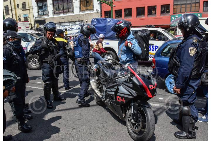 CIUDAD DE MÉXICO, 14AGOSTO2018.- Elementos de la Secretaría de Seguridad Pública (SSP) de la capital, llevaron a cabo un operativo en la Plaza Meave ubicada sobre Eje Central, en la que decomisaron celulares presuntamente robados y motocicletas que no presentaban papeles en forma. FOTO: ARMANDO MONROY/CUARTOSCURO.COM