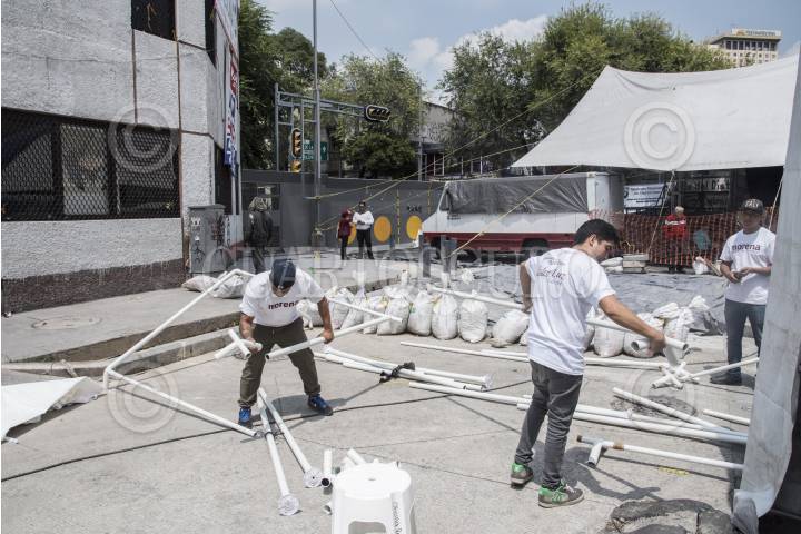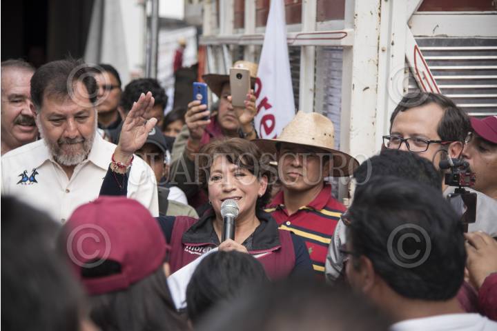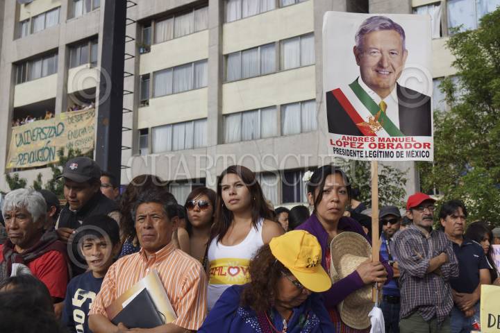 CIUDAD DE MÉXICO, 26JULIO2017.- La maestra Delfina Gómez, ex candidata a la gubernatura de Estado de México por Morena, el político Gerardo Fernández Noroña, y José Ramón López Beltrán, hijo de Andrés Manuel López Obrador, continuaron la "Marcha por la Esperanza", partieron de la Plaza de las Tres Culturas a la Secretaría de Gobernación, en donde instalaron un campamento en las calles aledañas, para exigir se transparente los resultados de la elección electoral del Estado de México. FOTO: MARIO JASSO /CUARTOSCURO.COM