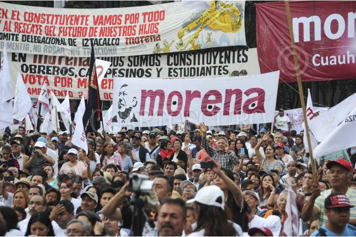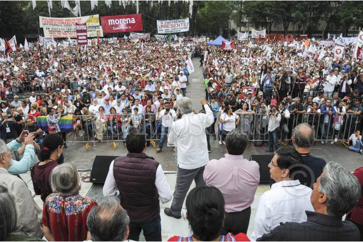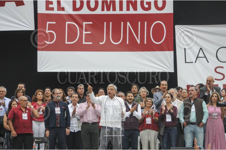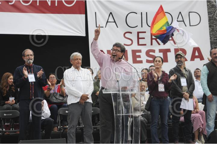 CIUDAD DE MEXICO, 28MAYO2016.- Andrés Manuel López Obrador, presidente del partido Movimiento de Regeneración Nacional (Morena), Martí Batres, presidente de Morena en la ciudad de México, y Ricardo Monreal, jefe de la delegación Cuahtémoc, encabezaron el cierre de campaña de los candidatos por Morena a la Asamblea Constituyente, en la explanada de la Plaza de las Tres Culturas de Tlatelolco. FOTO: DIEGO SIMÓN SÁNCHEZ /CUARTOSCURO.COM