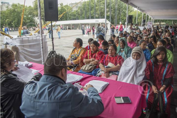 CIUDAD DE MÉXICO, 26JULIO2017.- Personas de comunidades indígenas recibieron esta mañana un seguro de desempleo proporcionado por el Gobierno de la Ciudad de México, en el Marco del Convenio de Colaboración firmado entre las Secretarías de Trabajo y Fomento al Empleo (STyFE), y la de Desarrollo Rural y Equidad para las Comunidades de la CDMX (Sederec). Las titulares de las dependencias entregaron apoyos en la Plaza de las Tres Culturas a 833 personas indígenas, de las cuales 282 son hombres, y 551 mujeres. FOTO: MARIO JASSO /CUARTOSCURO.COM