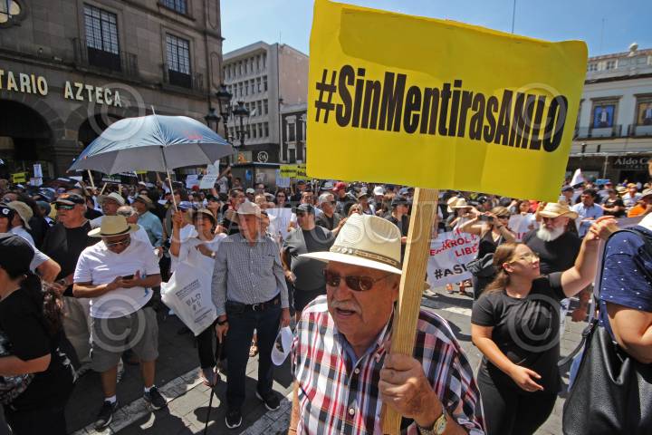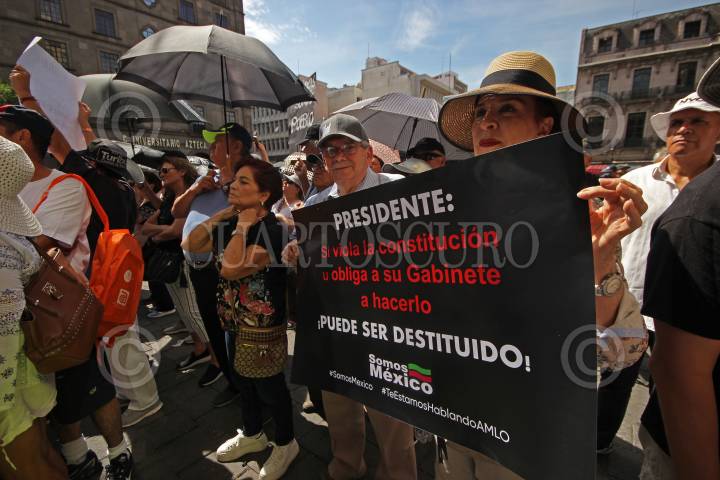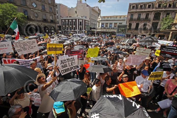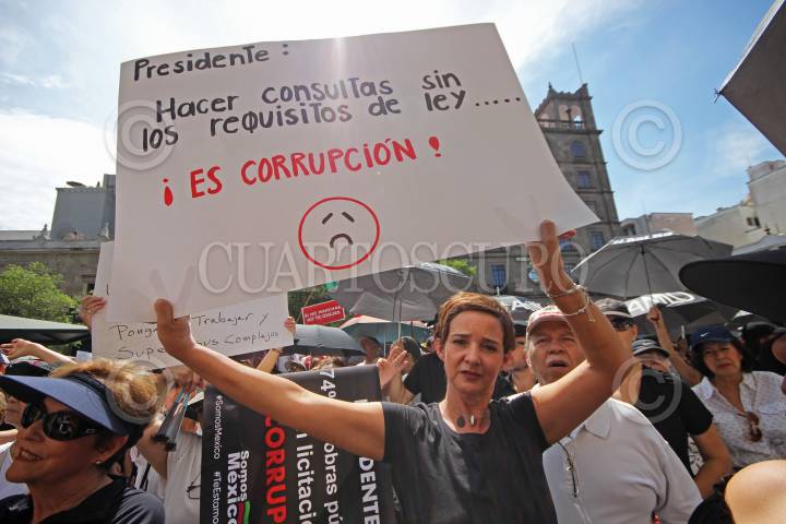 GUADALAJARA, JALISCO, 05MAYO2019.- Esta mañana se llevo a cabo una protesta en contra del Presidente Andrés Manuel López Obrador, denominada “Chalecos México” a la cual acudieron decenas de personas inconformes con la gestión del mandatario, esto en Plaza Universidad en el centro de la ciudad. FOTO: FERNANDO CARRANZA GARCIA / CUARTOSCURO.COM
