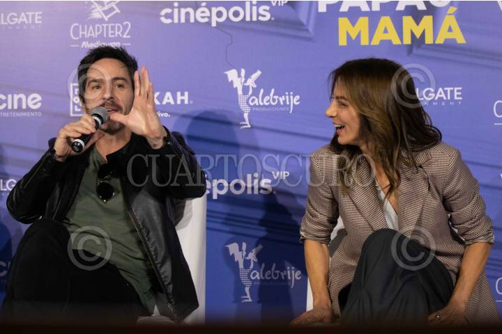 CIUDAD DE MÉXICO, 24NOVIEMBRE2023.- Los actores Mauricio Ochmann y Silvia Navarro, durante la presentación de la película "Papá o Mamá" la cual se estrenará el próximo 30 de noviembre en cines del país. FOTO: MARIO JASSO/CUARTOSCURO.COM