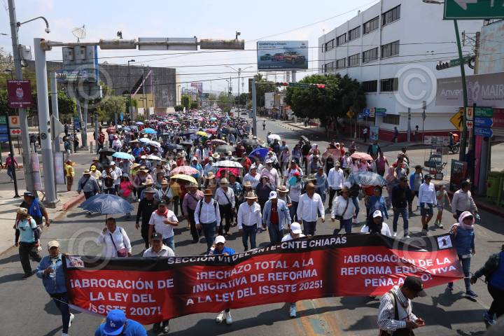 TUXTLA GUTIÉRREZ, CHIAPAS, 06MARZO2025.- Maestros y maestras incorporados a la Coordinadora Nacional de Trabajadores de la Educación CNTE realizaron una manifestación en la capital chiapaneca para exigir al gobierno federal que se abran más plazas para los profesores recién egresados. Los profesores realizaron un paro de labores durante los días 6 y 7 de marzo para que sus exigencias sean escuchadas. FOTO: ISABEL MATEOS/CUARTOSCURO.COM