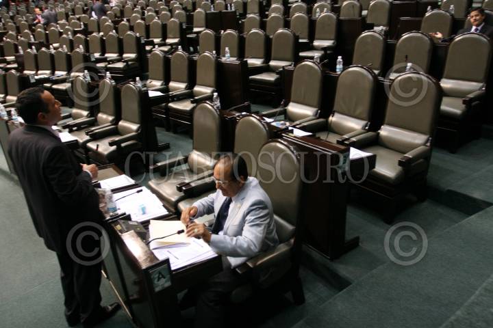MÉXICO, D.F., 23SEPTIEMBRE2010.- El salón de plenos se muestra prácticamente vacío momentos antes de concluir la sesión en la Cámara de Diputados. FOTO: GUILLERMO PEREA/CUARTOSCURO.COM