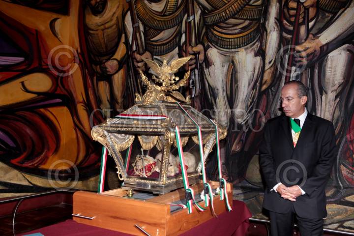 MÉXICO D.F., 30MAYO2010.- El presidente Felipe Calderón durante los honores plenos a los restos de los Heroes de la Patria que se realizo en el Castillo de Chapultepec. FOTO: IMPERIO RESENDIZ/CUARTOSCURO.COM