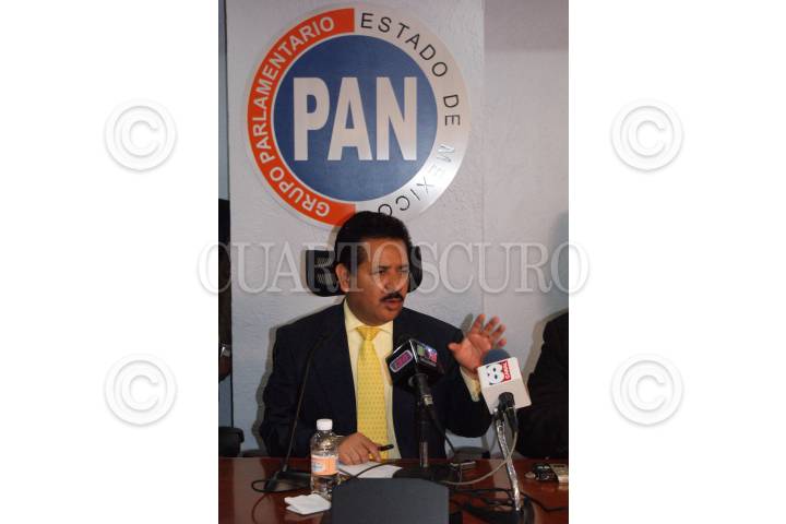 TOLUCA, ESTADO DE MÉXICO, 14SEPTIEMBRE2010.- Luis Sánchez Sánchez, diputado del Partido de la Revolución Democrática (PRD) en el Congreso del Estado de México, ofreció junto con sus compañeros de bancada y del Partido Acción Nacional (PAN), una conferencia de prensa a los medios de comunicación para dar a conocer su inconformidad respecto a la iniciativa para la extinción de las candidaturas comunes en el Congreso local. FOTO: JAIME ARRIAGA/CUARTOSCURO.COM