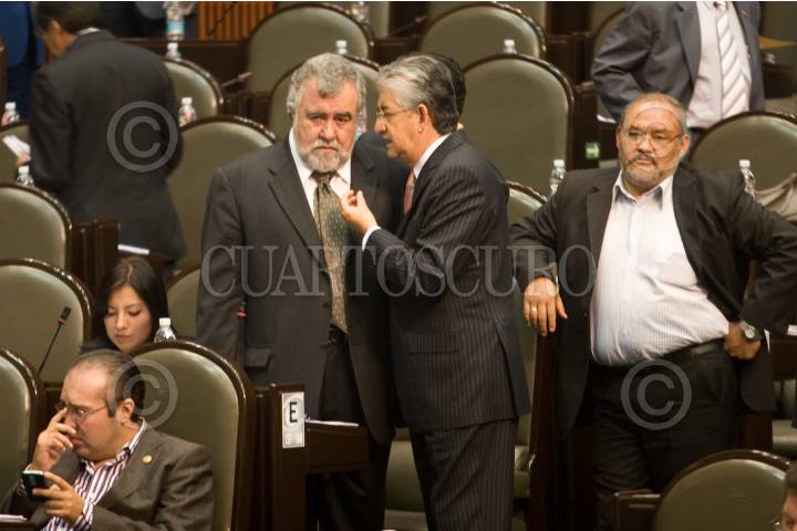 MÉXICO, D.F., 23SEPTIEMBRE2010.- Alejandro Encinas, Diputado del PRD y César Augusto Santiago, Diputado del PRI, durante la sesión en la Cámara de Diputados. FOTO: GUILLERMO PEREA/CUARTOSCURO.COM