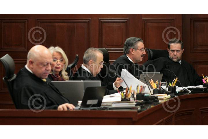 MÉXICO, D.F., 01MARZO2011.- Los ministros Guillermo Ortiz Mayagoitia, Olga María del Carmén Sánchez Cordero, Sergio Valls Hernández, Luis María Aguilar Morales, y Jorge Mario Pardo Rebolledo, durante la sesión de la Suprema Corte de Justicia de la Nación. FOTO: CUARTOSCUR5O.COM
