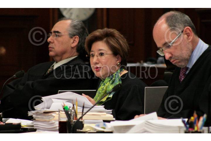 MEXICO, D.F., 01MARZO2011.- José Fernando Franco González Salas, Margarita Beatriz Luna Ramos y José Ramon Cossío Díaz, Ministros de la Suprema Corte de Justicia (SCJN), durante la sesión de la Suprema Corte de Justicia de la Nación. FOTO: CUARTOSCURO.COM