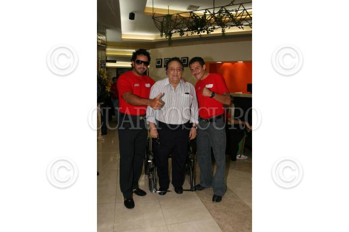 CHETUMAL, QUINTANA ROO, 27MAYO2007.- En proximos días se celebrara una gala boxistica de talla internacional denominada "Championship Boxing Asia in Mayan Border", por tal motivo el promotor de box en el estado; Pepe Gomez y el ex campeon mundial de peso pluma Oscar "Chololo" Larios saludan al Presidente del Consejo Mundial de Boxeo José Sulaiman Chagnón. FOTO: MARCO POLO GUZMÁN HERNÁNDEZ/CUARTOSCURO.COM