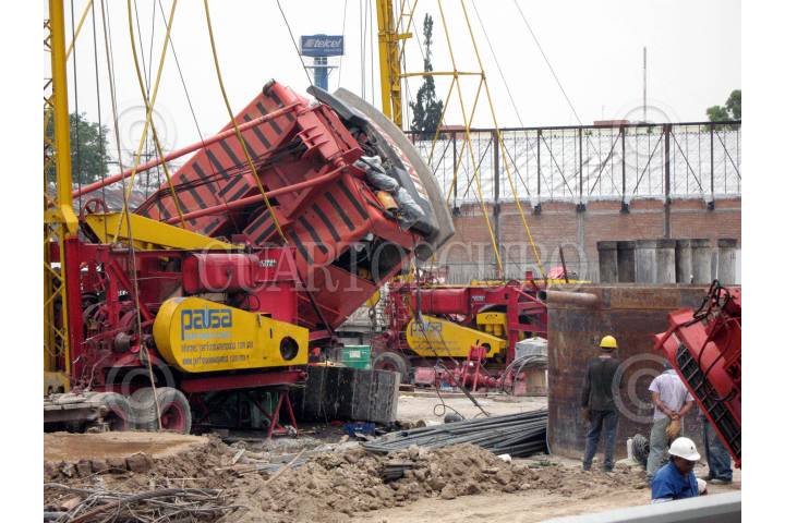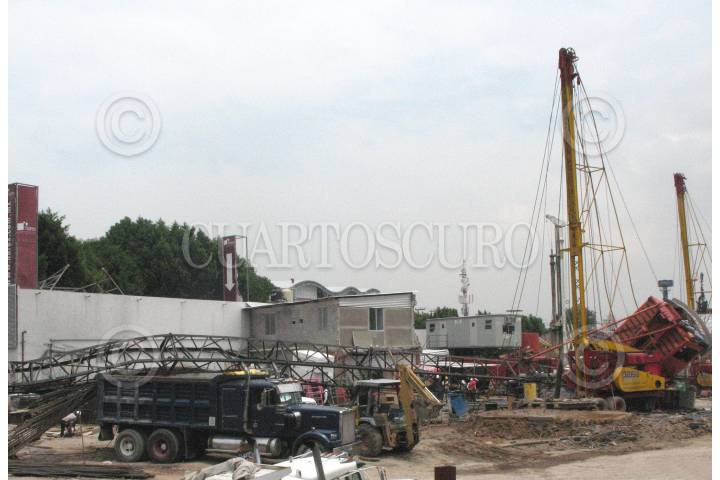 MEXICO, D.F., 16 AGOSTO2007.-Dos albañiles resultaron lesionados al volcarse una grua con una pluma para carga pesada en el interior de una construcccion en la calle Bahia de San Hipòlito y ejercito Nal. en la colonia Anzures. FOTO:PEDRO MARRUFO/CUARTOSCURO.COM
