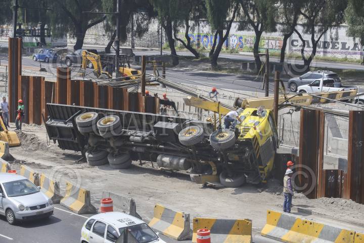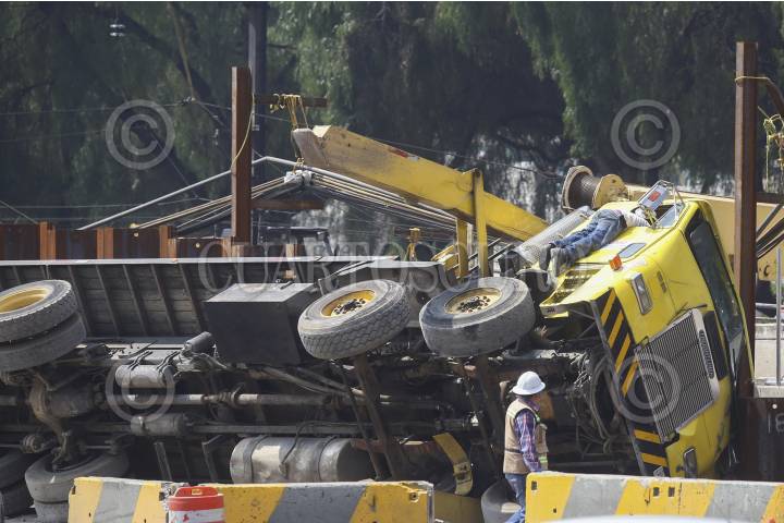 MÉXICO, D.F., 29JULIO2015.- Una volcadura de una pluma industrial y un traxcabo se volcaron al interior de las vías del metro férreo entre las estaciones Peñon Viejo y Guelatao de la linea A donde se realiza la renivelación de las vías del metro. FOTO: SAÚL LÓPEZ /CUARTOSCURO.COM