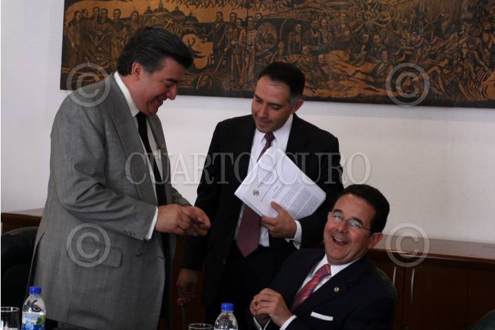 México D.F., a 28 de Noviembre de 2007.- Raúl Mejía, Alejandro Zapata y Carlos Sotelo en la reunión de trabajo del grupo plural con el representante de la oficina del Alto Comisionado de la organización de las Naciones Unidas con integrantes del Senado de la República. FOTO: VICTORIA VALTIERRA/CUARTOSCURO.COM