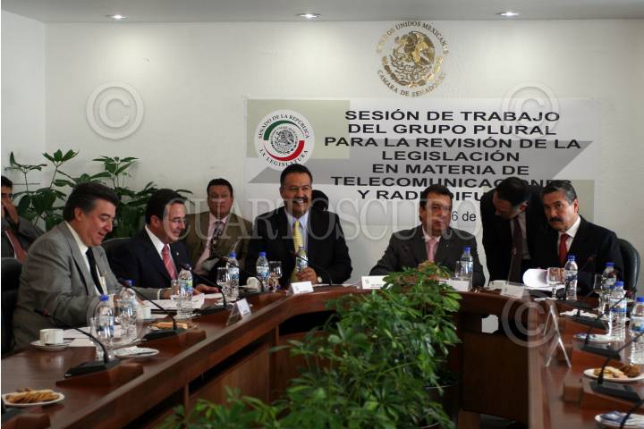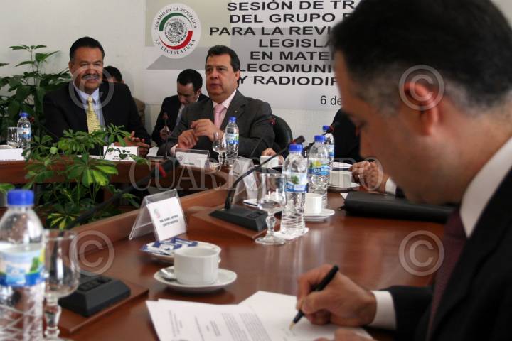 MÉXICO D.F. 06FEBRERO2008.-Se llevo acabo la reunión de trabajo del grupo plural para la revisión de la legislación en materia de Telecominicaciones y Radiodifución.En la imagen los senadores integrantes Felipe González, Francisco Arroyo, Carlos Sotelo García, Angel Aguirre, Julio Di-Bella y Raúl José Mejía. FOTO: GUILLERMO PEREA/CUARTOSCURO.COM