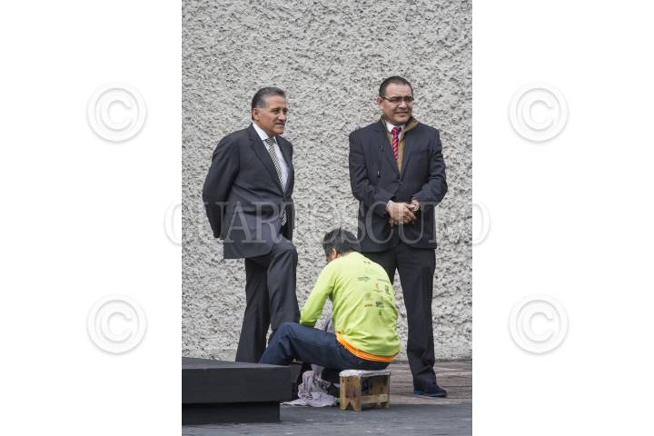 MÉXICO, D.F., 19OCTUBRE2015.- Joaquín Hendricks Díaz, ex gobernador de Quintana Roo, y el senador Arturo Zamora aprovechó para bolearse los zapatos, previo al inicio del acto por el 70 aniversario luctuoso del general Plutarco Elías Calles, en la sede nacional del PRI. FOTO: ISAAC ESQUIVEL /CUARTOSCURO.COM
